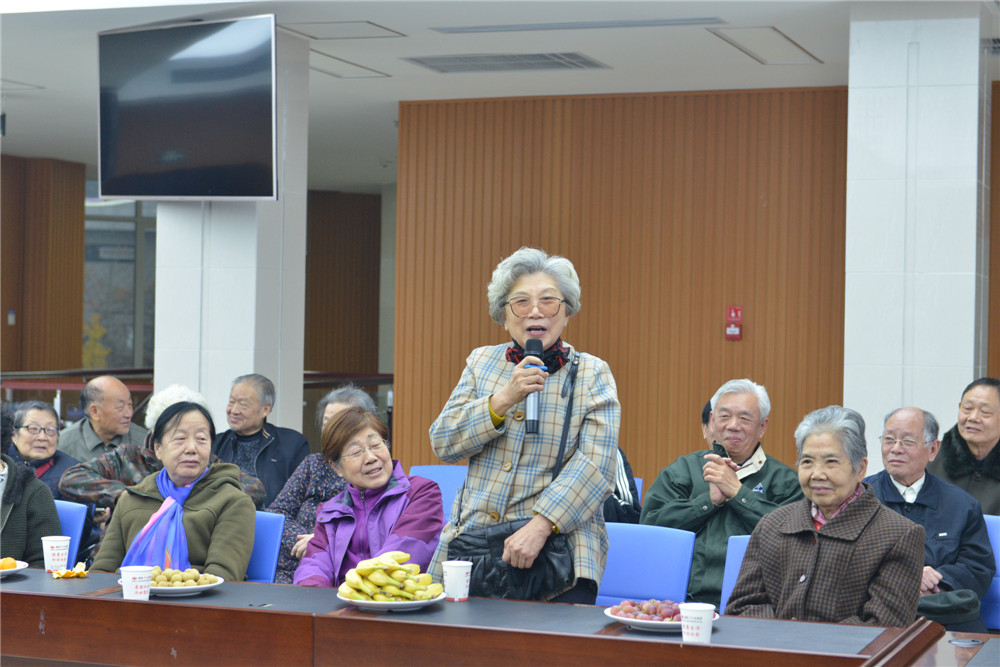 老干部們在座談會上爭相發(fā)言,熱情抒發(fā)自己激動喜悅的心情。首先代表發(fā)言的是老院長褚瀅,他祝愿在座的老同志身體健康,相約百年院慶時再聚首。