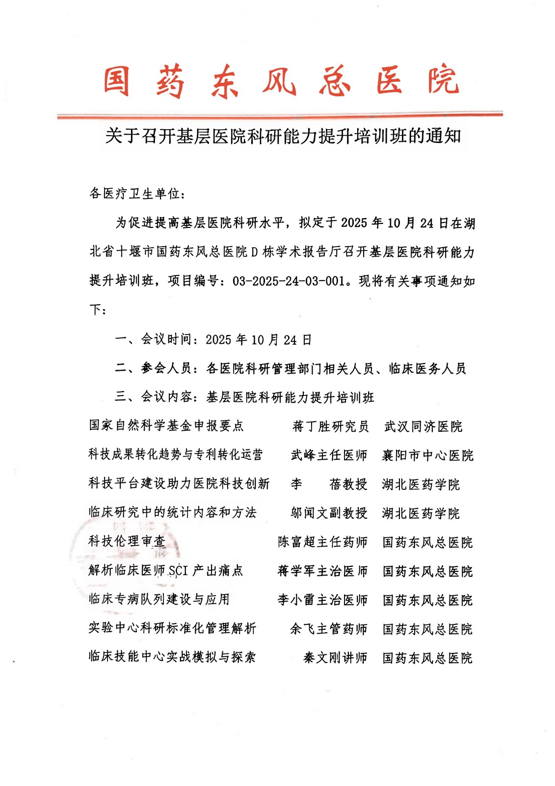 關(guān)于召開2025年基層醫(yī)院科研能力提升培訓(xùn)班的通知