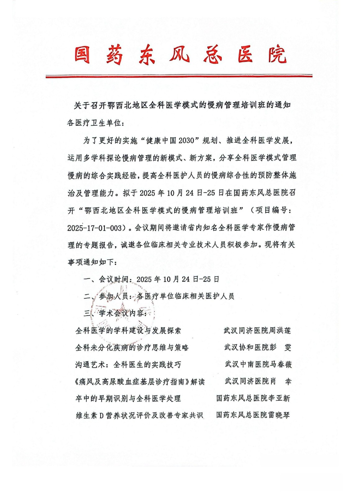關(guān)于召開(kāi)鄂西北地區(qū)全科醫(yī)學(xué)模式的慢病管理培訓(xùn)班的通知